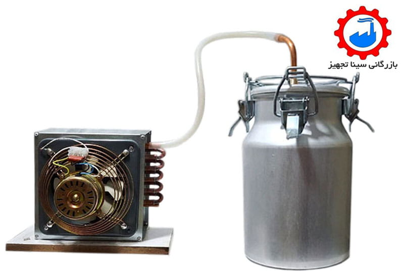 همراه با یک عدد دستگاه کندانسور ( خنک کننده ) لوله مسی و یک متر شلنگ سیلیکونی